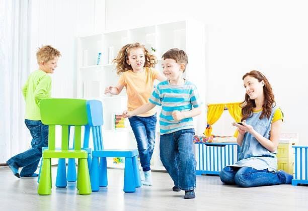 “Musical chairs” van so klein as die 2-3 jaar klas. Dans met sekere bewegings op sekere liedjies. Leer liedjies met bewegings bv. stap soldaatjie ens.